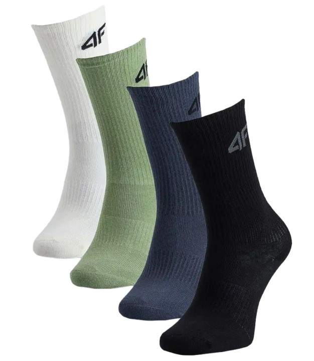 Boys' socks are the perfect choice for everyday activities. Thanks to the use of soft and elastic fibres, they adapt to the shape of the foot, ensuring comfort. They have a mid-calf length. They are made of 66% cotton, which makes them soft, durable, and pleasant to the touch. Thanks to the addition of polyamide (30%), the material is more resistant to stretching and creasing. Everyday socks with the 4F logo on the cuff. Multipack: 4 pairs in the set. Cotton socks for boys are made of elastic material that fits closely to the foot. They have cuffs that keep the sock in the right position.